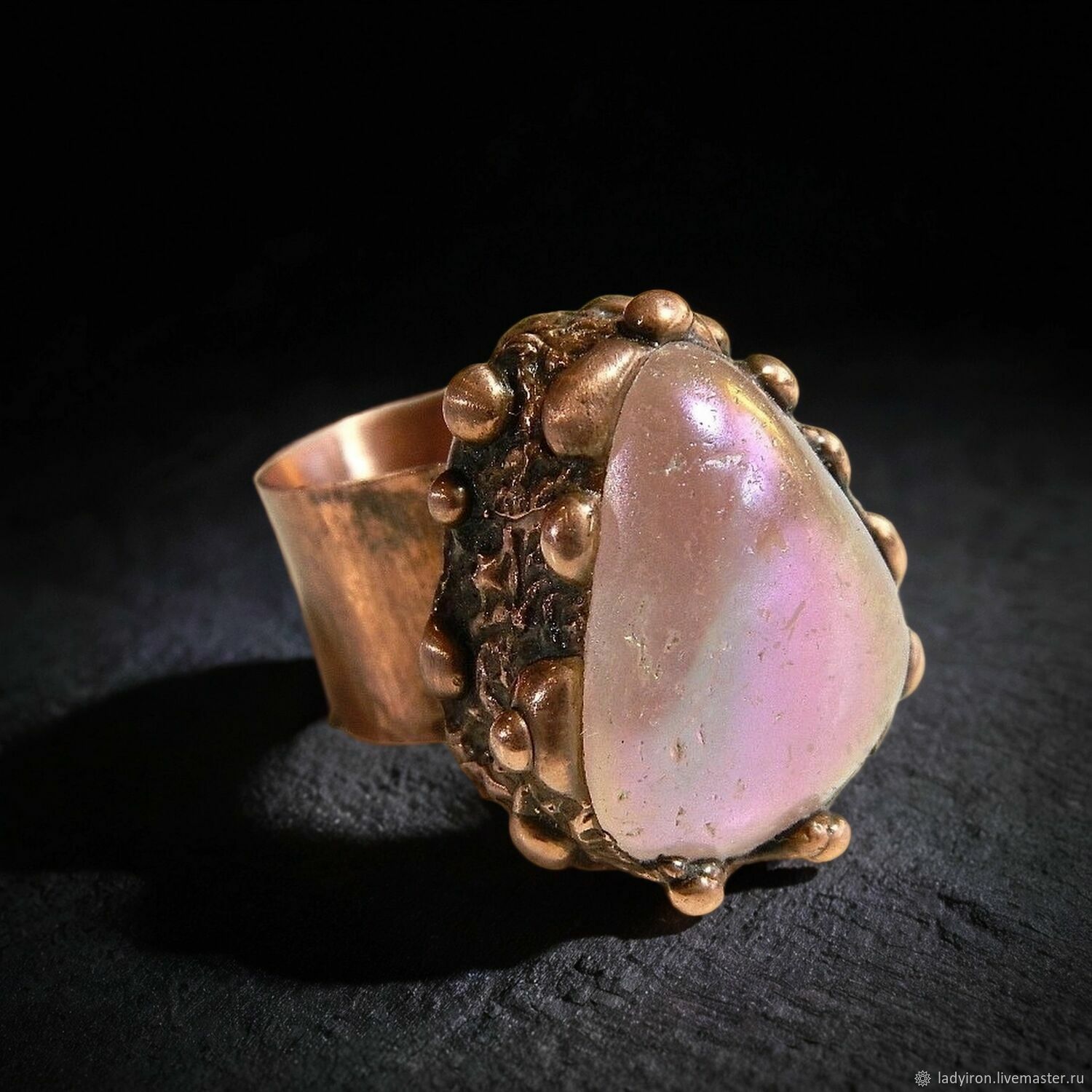 Кольцо с натуральным розовым кварцем "Аура любви" - авторская работа в единственном экземпляре. Это кольцо не случайно попало к вам в руки. Розовый кварц с титановым напылением обладает древней силой, которая веками помогала людям находить истинную любовь и исцелять сердечные раны. Каждый кристалл формировался в недрах земли тысячи лет, накапливая энергию для своего будущего владельца. Почему это украшение изменит вашу жизнь Мастер отбирает только те камни, которые резонируют с энергией любви. Ручная обработка сохраняет природную силу кристалла, а титановое покрытие многократно усиливает его воздействие на тонкие энергии человека. Что почувствует владелец притяжение подходящих людей усиливается уже через несколько дней ношения. Старые обиды растворяются, освобождая место для новых чувств. Уверенность в себе растет, отношения с близкими становятся гармоничнее. Сердечная чакра очищается от негативных программ и блоков. Кольцо подходит только тем, кто действительно готов к переменам в личной жизни. Камень работает безжалостно - может полностью изменить ваше окружение, убрав неподходящих людей и привлекая новых. Уникальность каждого изделия даже если мастер создаст похожее кольцо, оно будет кардинально отличаться от этого. В природе не существует двух абсолютно одинаковых кристаллов - каждый камень имеет свой неповторимый рисунок, включения и энергетический отпечаток. Оправа выполняется исключительно вручную, без использования машинной штамповки, поэтому каждая работа несет в себе индивидуальную энергию мастера и получается уникальной. Как носить: cочетается с любым стилем от романтичных платьев до строгих деловых костюмов. Особенно эффектно смотрится с белыми, пудровыми и серыми оттенками. Идеальный выбор для тех, кто устал от одиночества или хочет вернуть страсть в отношения.